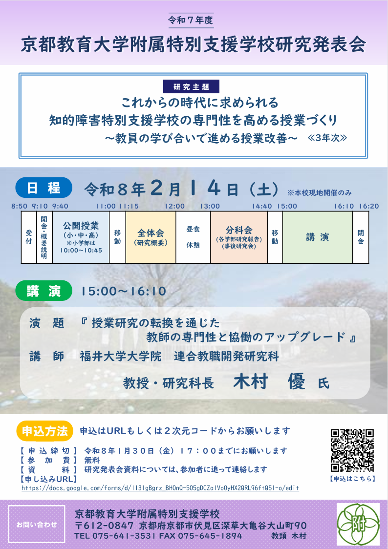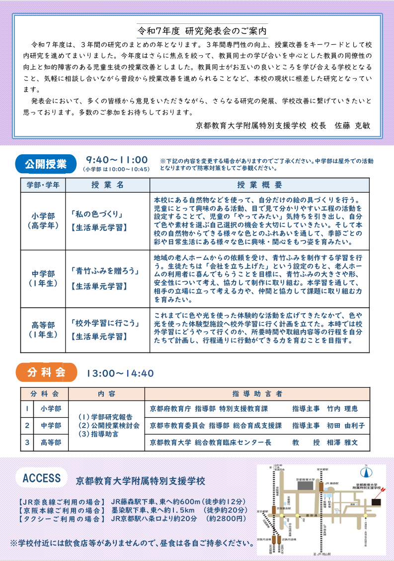令和7年度京都教育大学特別支援学校研究発表会について2次案内を掲載いたします。